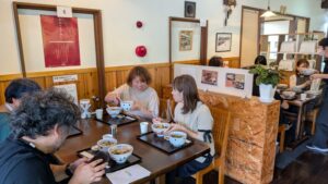 A型事業所では、障がい者が調理補助や接客などで働く飲食店『Dining&Cafe 原山』でお昼ご飯をいただきました。